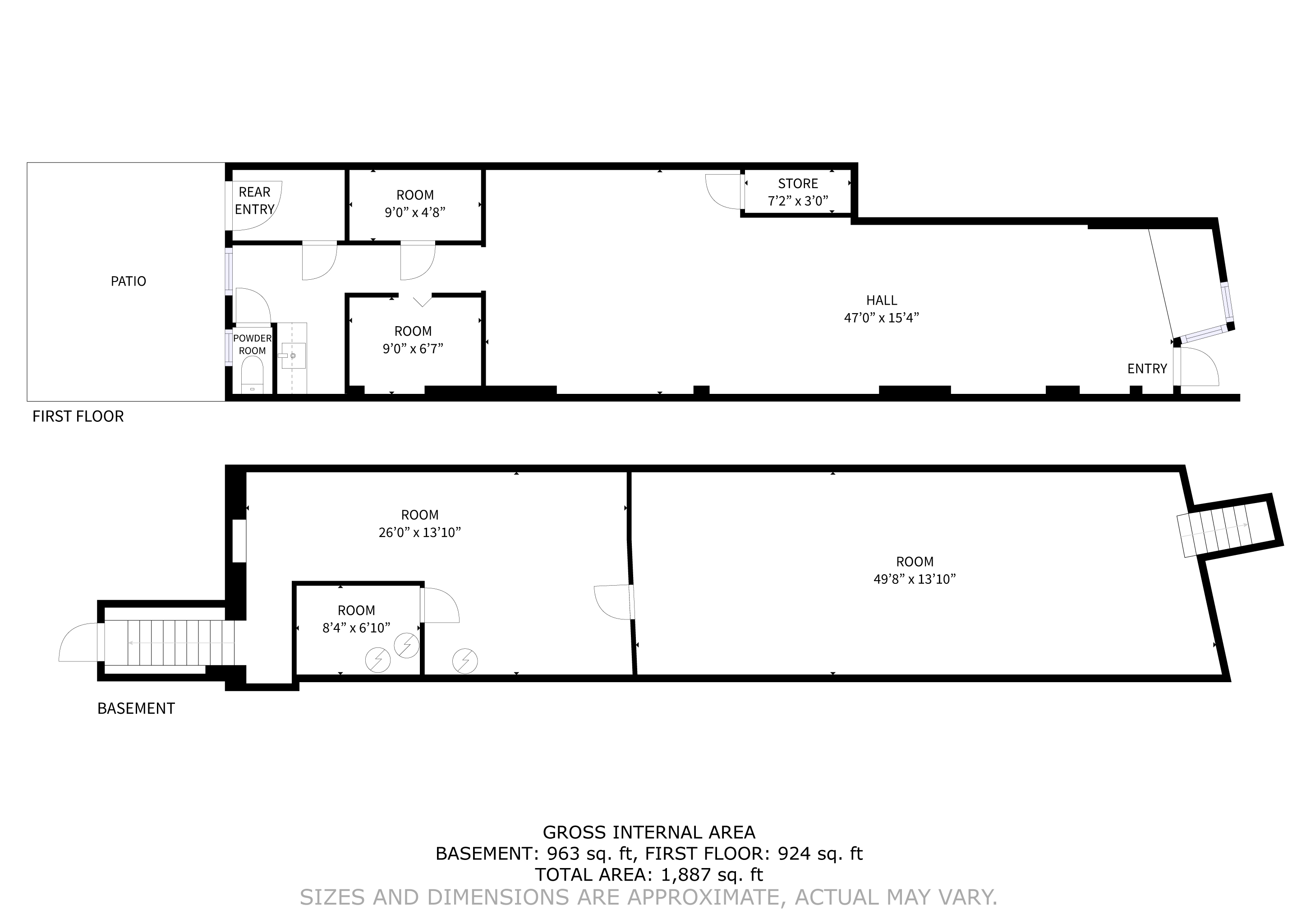 Step inside to a spacious restaurant area featuring room for multiple tables and a welcoming bar counter, creating the perfect setting for guests to gather, dine, and socialize. The open layout allows for flexibility in design and flow, helping you craft an inviting atmosphere tailored to your brand.